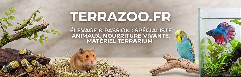 Rejoignez la communauté des passionnés de terrarium et explorez un univers où nature et découverte se rencontrent. Avec Terrazoo, donnez vie à vos projets d’élevage et profitez d’une sélection unique d’invertébrés exotiques, nourritures vivantes et accessoires de qualité.