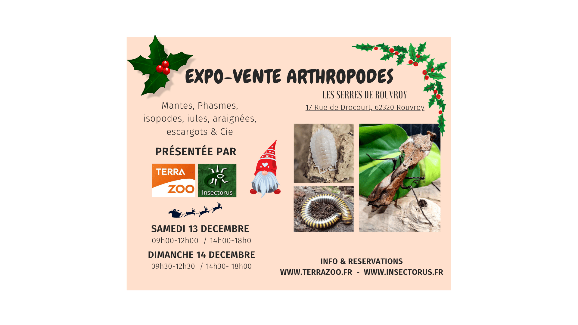 Bienvenue sur Terrazoo, la boutique en ligne dédiée à la vente d’animaux exotiques et à l’élevage d’invertébrés pour terrarium. Passionnés de terrariophilie, nous proposons un large choix d’espèces : phasmes d’élevage, cloportes tropicaux, mantes religieuses, mille-pattes géants (Spirostreptus servatius), ainsi que d’autres invertébrés fascinants pour débutants et passionnés confirmés.