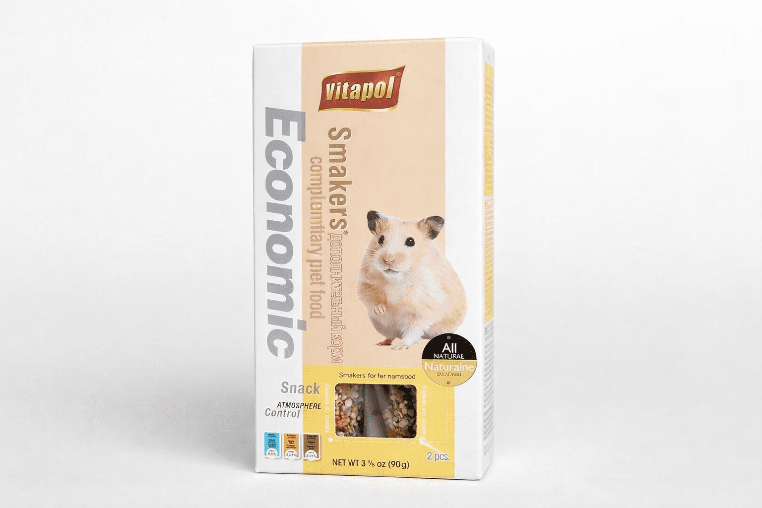 Les Smakers Économique Vitapol sont des sticks gourmands spécialement conçus pour compléter l’alimentation quotidienne des hamsters. Élaborés à partir de céréales sélectionnées, de graines de tournesol et de carottes, ils apportent à la fois plaisir, énergie et nutriments essentiels.